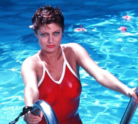 Barbi Benton in a sexy little bikini sitting on a wooden fence