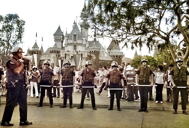 On August 7, 1970, lined the street in front of Disneyland’s Sleeping Beauty Castle in Anaheim, California, as the park was forced to close for the day due to protests. Several hundred youths, described as “hippie-types,” refused to stop marching through the park and climbing buildings, leading to 18 arrests.